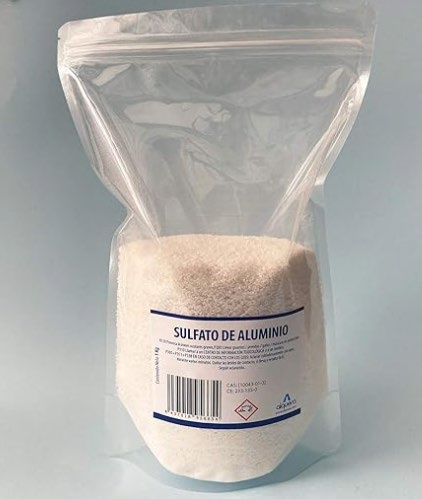 Una vez logrado el pH adecuado, llega el momento de aportar aluminio. La forma más sencilla y segura es mediante sulfato de aluminio (Al₂(SO₄)₃). Se disuelve en agua y se aplica en el riego una vez al mes desde el otoño hasta la primavera, con una dosis aproximada de 2 gramos por litro de agua. Es preferible realizar aportes suaves y regulares que un tratamiento concentrado. El aluminio solo se necesita durante la formación de los capullos florales, cuando los pigmentos (antocianinas) reaccionan con él y se produce el color azul. Una vez abiertas las flores, seguir aportándolo no modifica el color de esa floración.